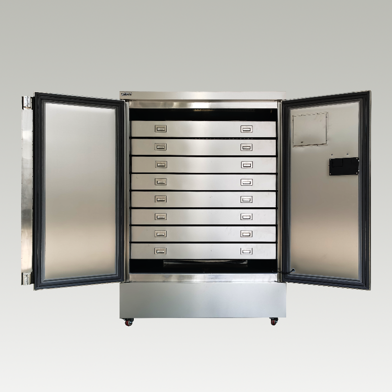 1.雙門8抽屜式高精度恒溫恒濕柜,箱體采用雙層不銹鋼折彎成型。